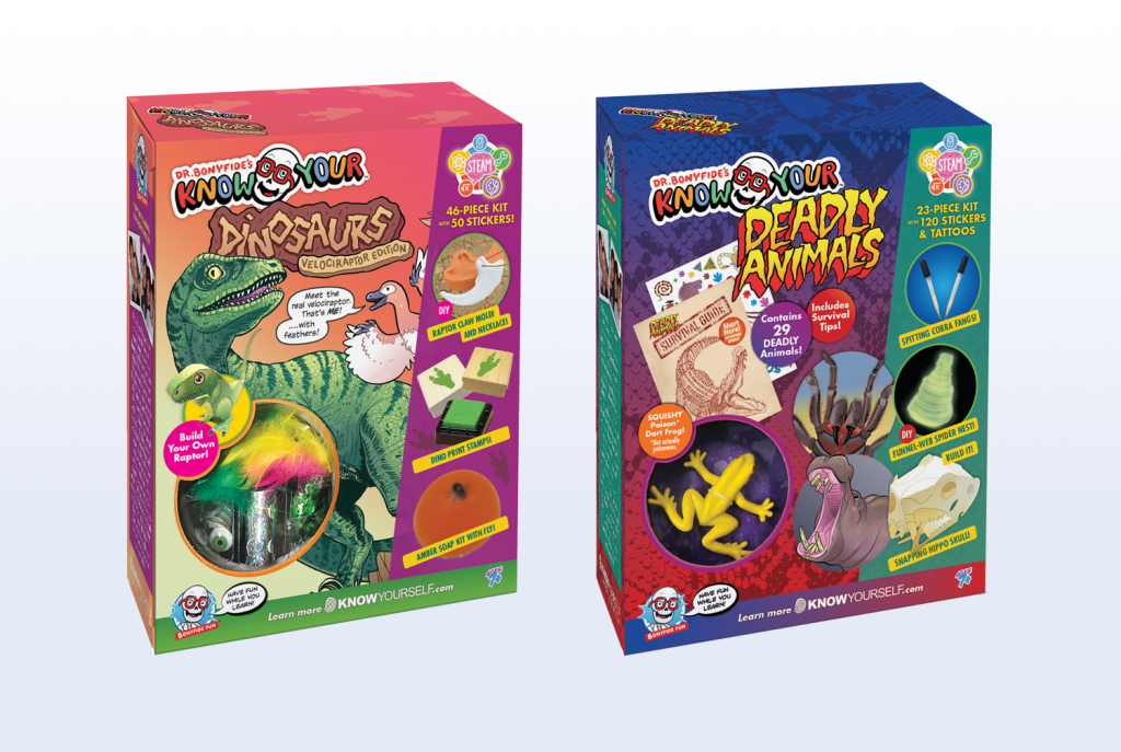 Packaging & Print Design, Production, and Art Direction for “Know Your Dinosaurs” and “Know Your Deadly Animals” STEAM activity kits for major retail. Client: Know Yourself